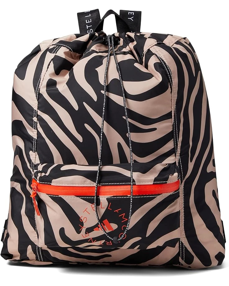 Sleek and trendy, the adidas® by Stella McCartney™ Gym Sack Backpack is your ideal companion for gym sessions.SKU: #9735170Polyester construction.Interior slip pocket.Interior and exterior zippered pockets.Drawstring closure.Dual shoulder straps on the back.Top handle with easy grip.Excellent space with a unique print.Polyester lining.Imported.Measurements:
