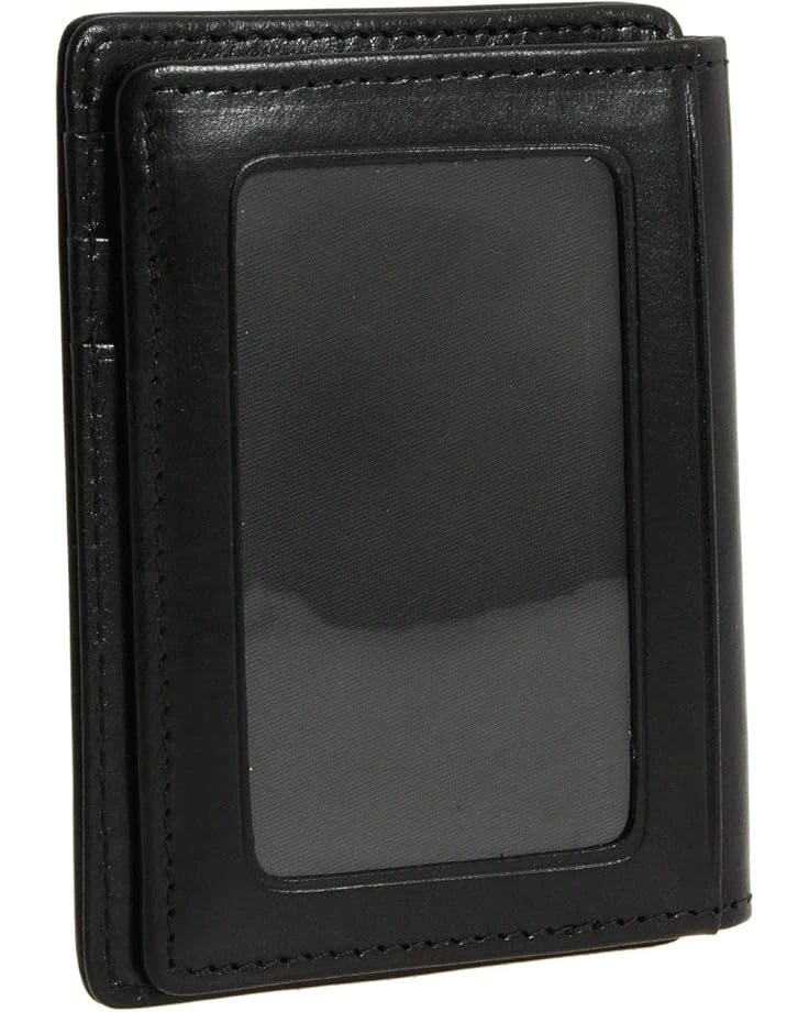 This Front Pocket Wallet is part of the Bosca® Old Leather Collection.SKU: #7855836Classic and elegant, this Front Pocket Wallet creates a warm, welcoming, and confident style. Leather’s color is applied by hand-sponging vegetable dyes onto the leather according to a centuries-old Tuscan technique and then ironed to produce a deep and varied color that allows the hide’s natural features to show through.Clear window ID slot on the front so you don’t have to take your ID out to show.Interior features three card slots, a money/receipt flap, and an open-top pouch.Spring tension money clip on the back keeps paper currency together.Measurements:
