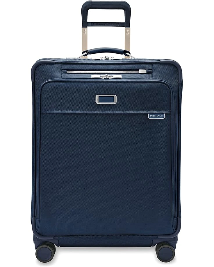 Keep your essentials safe and secure by carrying the Briggs & Riley® Baseline Medium Expandable Spinner Luggage Bag.SKU: #9873282Ballistic nylon fabric construction.Tri-foam garment folder with foam roll bar neatly holds one-to-two suits and prevents wrinkling.Premium garment panels that envelop your clothing with minimal creasing.Hide-away ID tag and SpeedThru pocket with orange lining visually informs you that the pocket is opened.One-touch CX® expansion increases packing capacity when you need more space.Handle on top.Self-repairing YKK® RC zippers.Monogram leather detailing provides elegant personalization.Outsider® handle provides optimal capacity.Proprietary shock absorbing spinner wheels offer 360° maneuverability.Substantial corner-guard protection.SmartLink™ strap allows for easy transport.Hide-away leather ID tag.Imported.