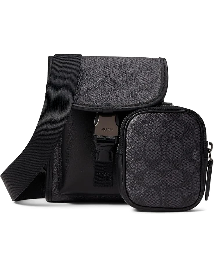 Please Note: COACH™ items cannot be shipped to military addresses (APO or FPO) and addresses in Hawaii, the Virgin Islands, Guam or any other locations outside of the continental US.SKU: #9735746Keep close your essentials while you trek or pack up for a trip carrying the sleek and elegant COACH™ Charter North/South Crossbody with Hybrid in Signature.Signature coated canvas and refined calf leather construction.Exterior slip pockets.Durable crossbody strap.Push-button buckle closure.Small pouch with zippered closure included.Allover printed design.Compact yet spacious style.Fabric lining.Imported.Measurements: