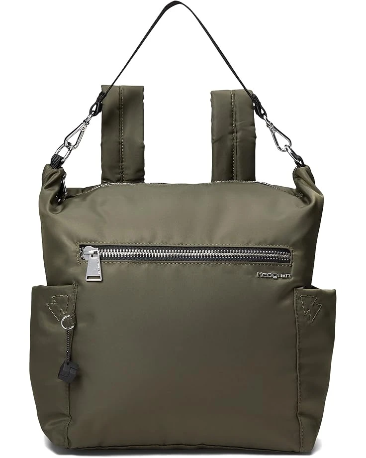 An accessory that keeps all the essentials in place, the Hedgrenâ„¢ Kate Sustainably Made Convertible Backpack has a sleek and stylish look.SKU: #9825530Polyester construction.Zippered closure.Handle on top.Adjustable shoulder straps for easy carrying.One zippered interior back wall pocket, one zippered exterior front compartment.Two interior front wall slip pocket, two exterior side pouches, and one exterior back pocket to store tablet with hook-and-loop closure.Signature brand detailing on the front.Lining: polyester.Imported.Measurements: