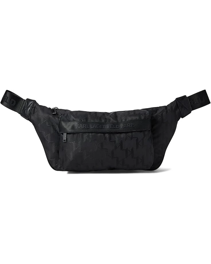 KARL LAGERFELD Paris™ LA2B9004 is truly a multifunctional fanny pack that has got everything you need to stay organized on your outdoor adventures or trips.SKU: #9829392Made of 89% nylon and 11% reprocessed leather.Zippered closure.One zippered interior back wall pocket and one slip pocket.One zippered exterior pocket.One adjustable webbing crossbody or waist strap with branding.Allover logo lettering with brand name on the front.Polyester lining.Imported.Measurements: