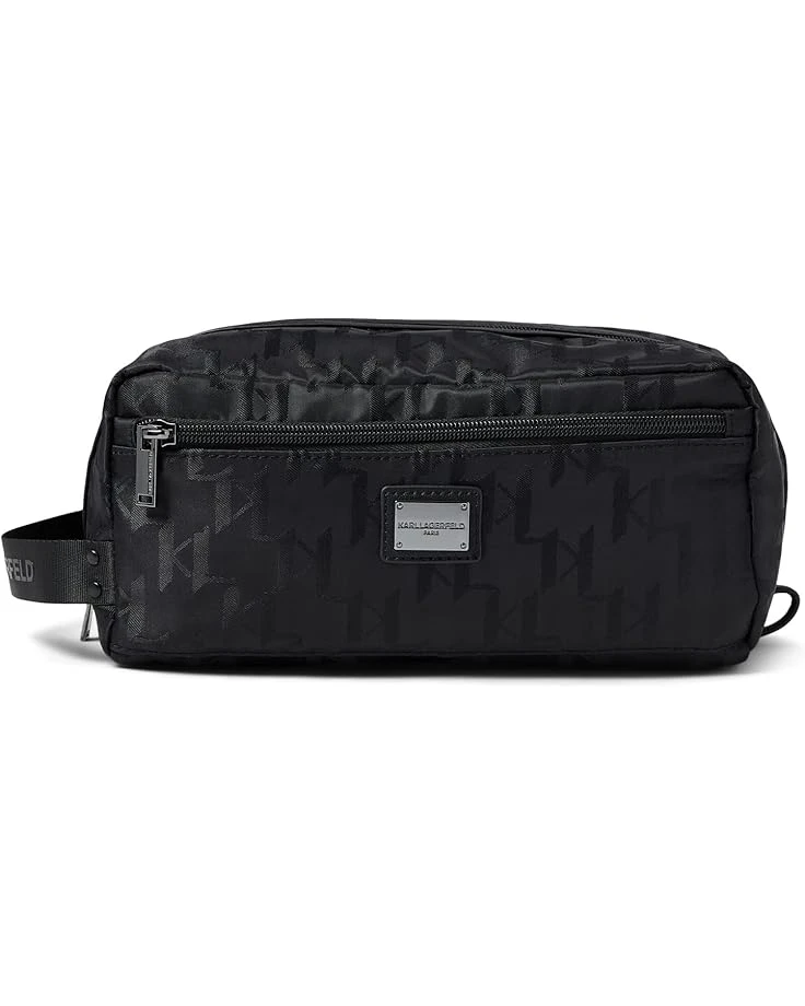 Keep your accessories safe inside the spacious Karl Lagerfeld Paris® LA2B9008 Toiletry and Cosmetic Pouch.SKU: #9829394Polyester and reprocessed leather construction.Zippered closure.One exterior front compartment.Signature brand detailing on the front.Handle on the side for easy carrying.Pull loop on the other side.Lining: Polyester.Imported.This product may have a manufacturer’s warranty. Please visit the manufacturer’s website or contact us at [email protected] for full manufacturer warranty details.Measurements: