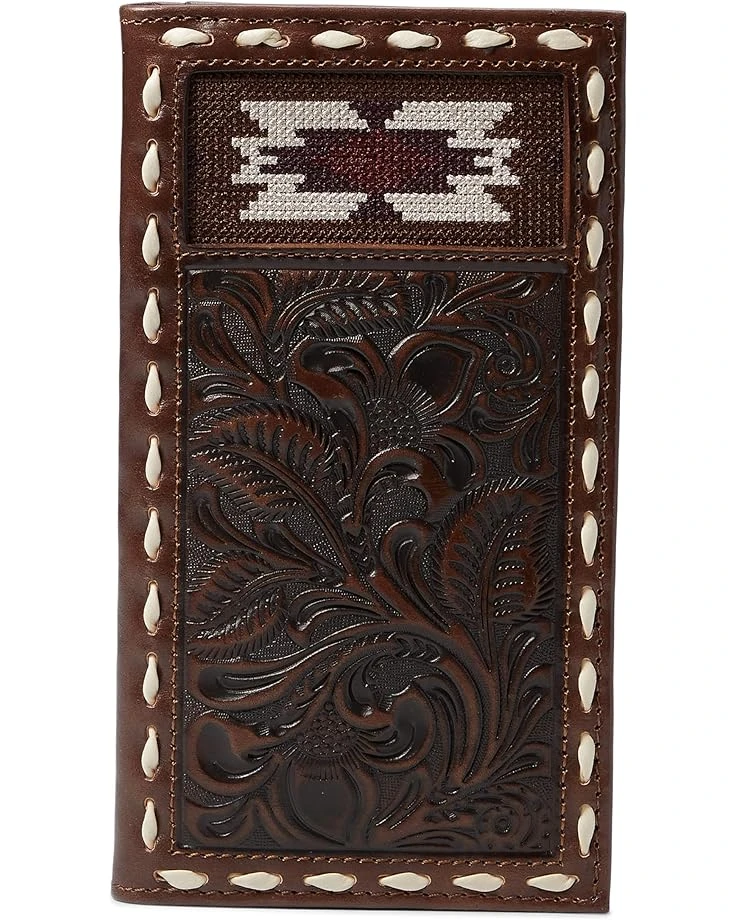 Featuring an eye-catching Southwestern pattern fabric inlay, the M&F Western™ Nocona Rodeo Wallet Southwestern Inlay & Lace is sure to add an extra element of flair to your everyday look.SKU: #9811876Leather and textile construction.Bifold closure.Four interior slip pockets, eleven card slots, and one ID window.One exterior slip pocket.Comes in a box.Imported.Measurements: