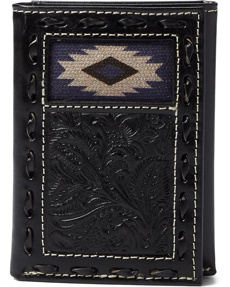 Elevate your style while keeping your cards and cash in a neat and organized way in the M&F Western™ Nocona Trifold Wallet Southwestern Inlay.SKU: #9811861Leather construction.Trifold closure.Three interior slip pockets, six card slots, and one ID window.Accented with Southwestern design inlay.Leather and textile lining.Comes in a box.Imported.Measurements: